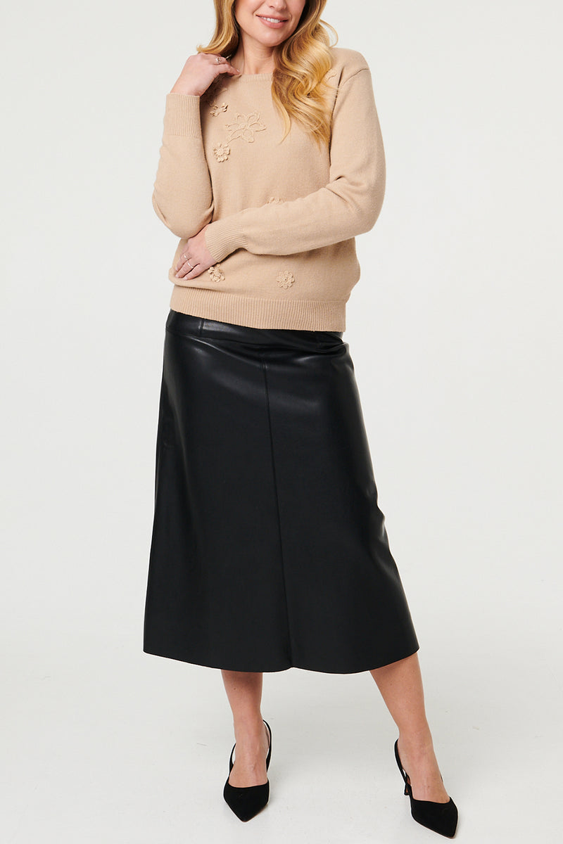 Floral Embroidered Texture Jumper with a round neck and long sleeves.