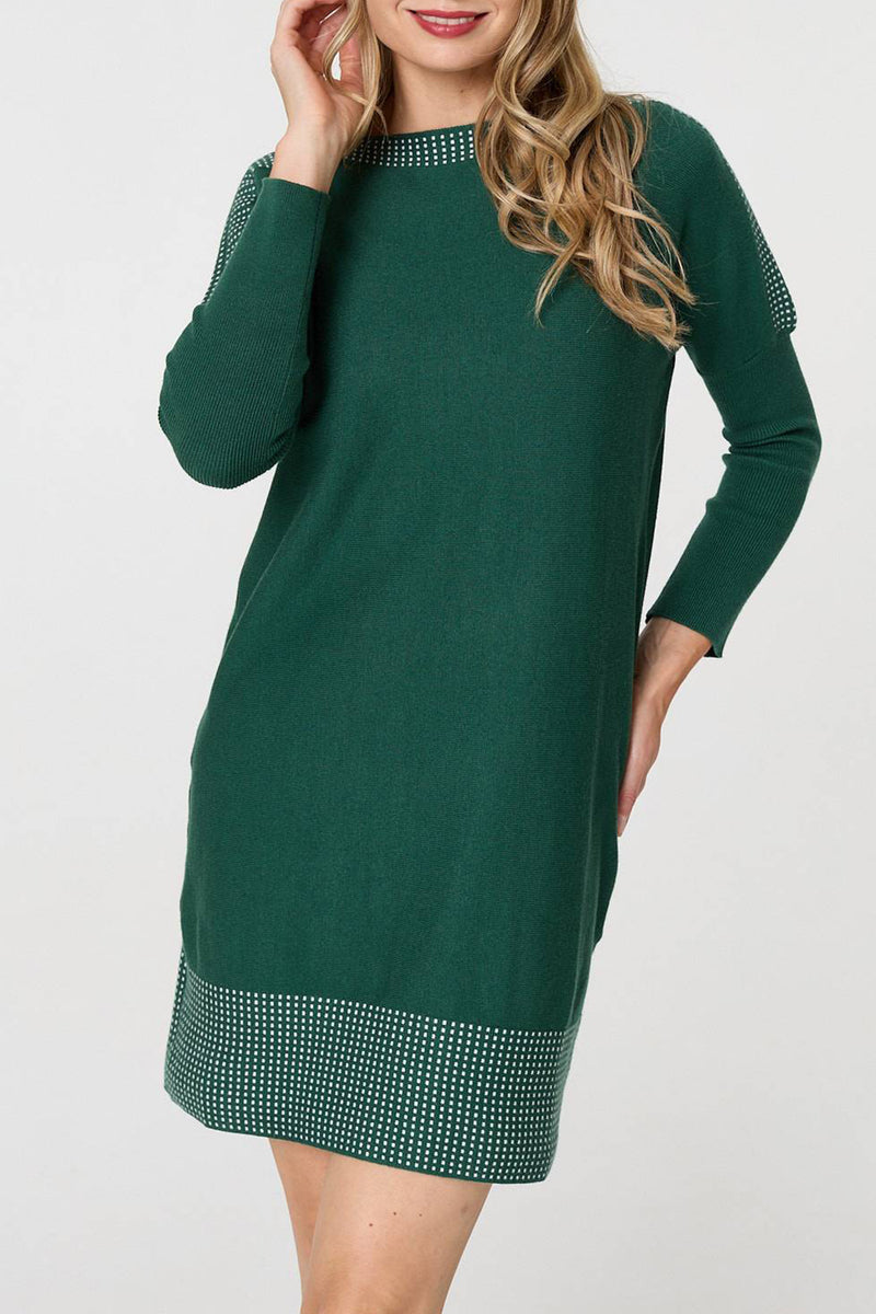 Geo Print Long Sleeve Short Jumper Dress with batwing sleeves, a boat neck and a shift shape.