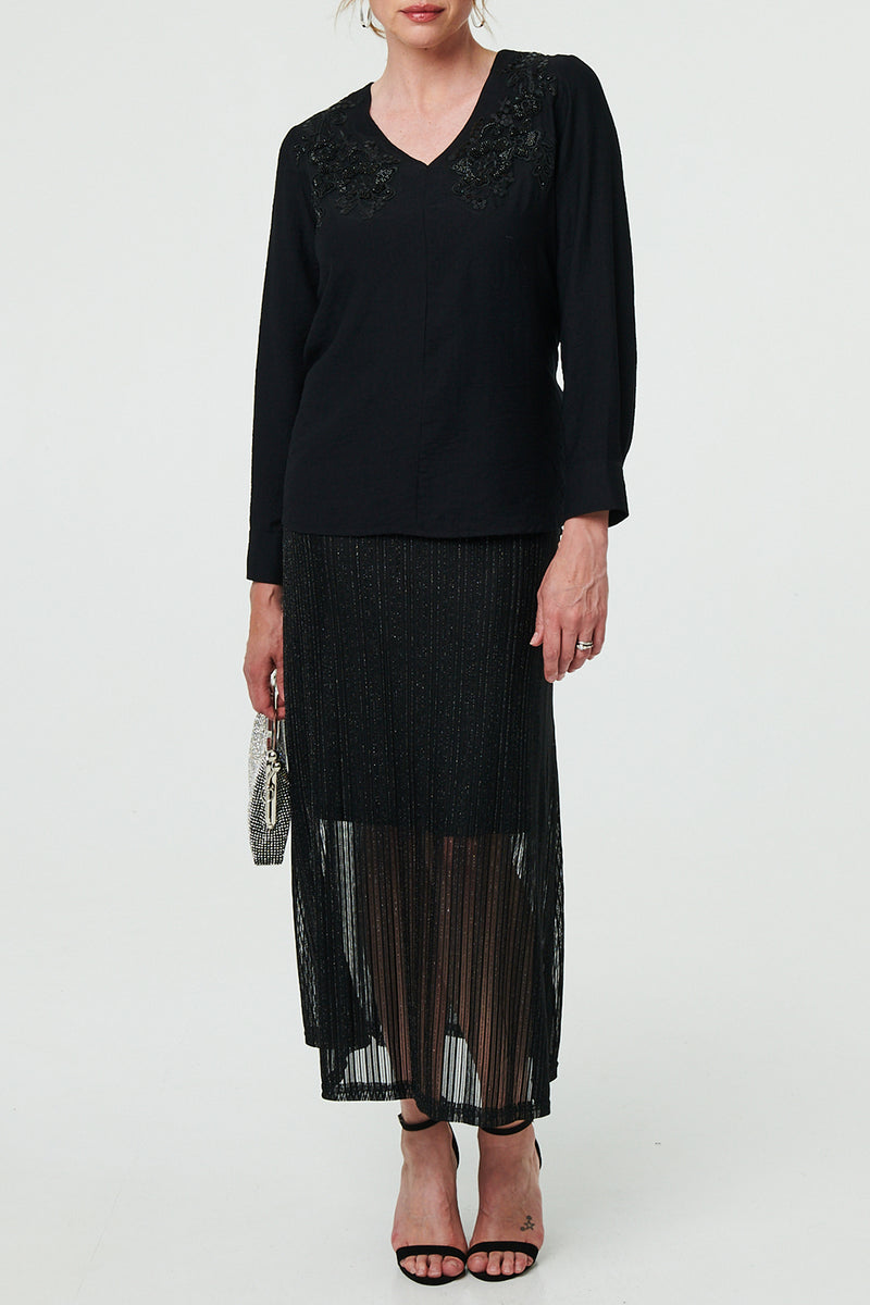 Floral Embroidered V-Neck Jumper with a v-neck and a hip length hem.